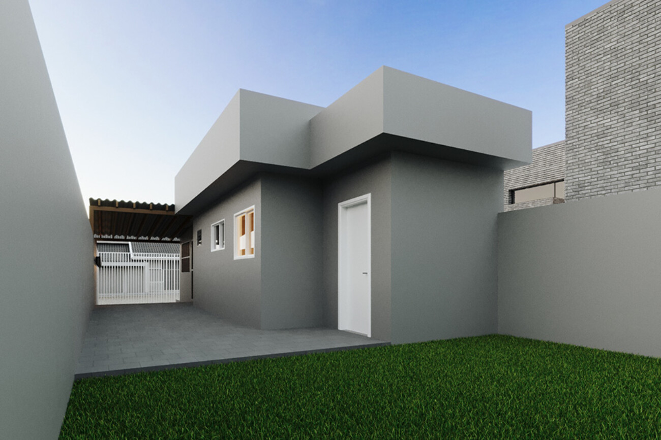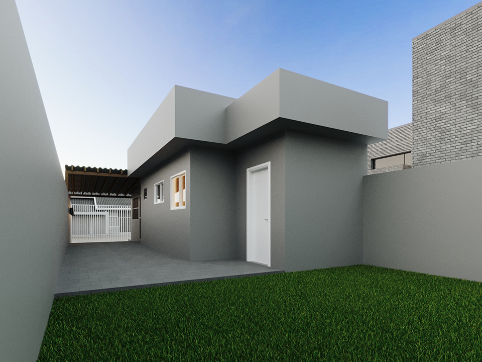 E por fim, através de um pergolado, adicionamos uma volumetria que integra a área construída ao restante do pátio, permitindo que a construção pareça maior visualmente.