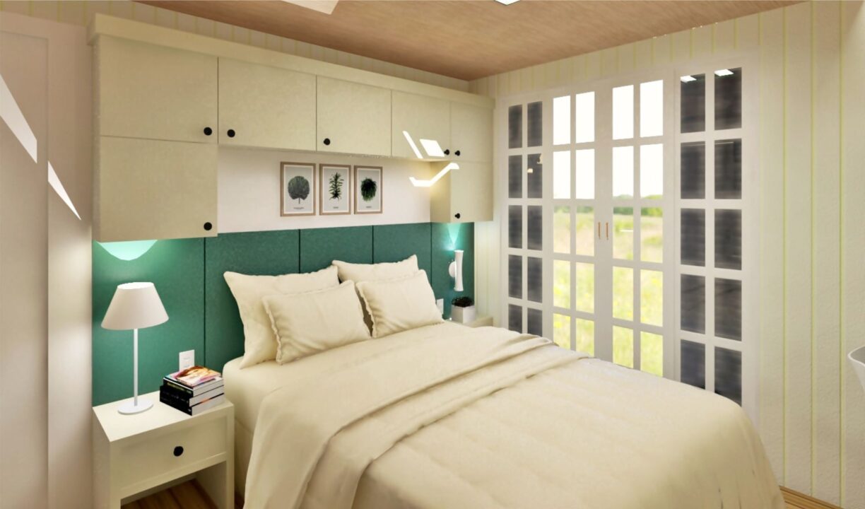 Este dormitório é todo clean com um toque de verde, a cor favorita da cliente, porque estes detalhes são importantes!