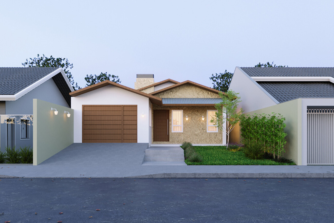 Além disso, uma ampliação foi projetada, trazendo uma nova garagem, sala de estar, jantar e lavanderia. E a fachada ficou assim: bem tradicional, com aberturas em madeira e alumínio e o telhado aparente encaixando perfeitamente na estrutura já existente!