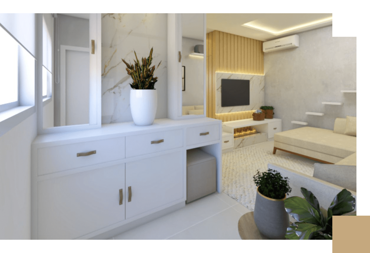 Aqui projetaremos todos os ambientes internos, incluindo móveis, iluminação, decoração, revestimentos…